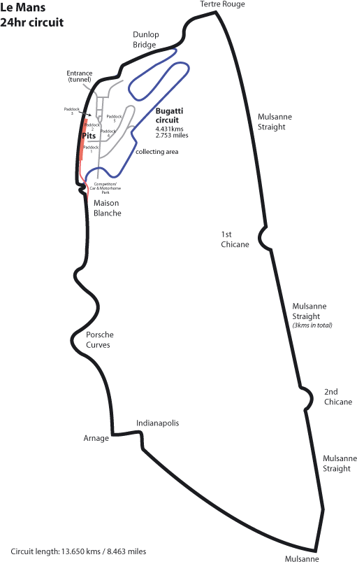For cars that either raced at Le Mans or are of a type that raced at Le Mans, racing on the full 24 hour circuit (only open two other times in the year - as it costs around 800,000 Euros to close the public roads, etc).