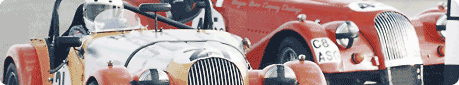 Keith puts on the power at SilverstoneSilverstone National - 29 July 2001The latest round of the MMCC took place at Silverstone on the 29 July and was hosted by the 750 Motor Club. To the amazement of all, the sun shone for the entire weekend so quite a few drivers returned to work on Monday morning with red noses as well as the usual racing blues. Scrutineering was interesting for Rick and Keith who, together with Chrises Williams and Acklam, Simon M and Phil H, had entered the 750 Roadsports Championship Race the preceding day. Rick and Keith had driven an epic race, battling for the lead all the way when one of the back markers spun at Copse just as the two hammered around the corner with Rick in the lead. As the spectators in the stands held their combined breath the drivers somehow avoided the spinning car but rearranged each other’s back wings. Keith gained the advantage but let Rick past to enable the battle to recommence. Rick duly went on to win the race with Keith second. The two had therefore spent some time knocking out their respective dents and neatly duck-taping up the damage which happily met with the Sunday scrutineers’ approval. For the rest of the competitors, scrutineering was a ball so that just left a four hour wait until practice to be filled with chit chat, ice creams race watching etc, etc. Twenty one cars drove out onto the National Circuit behind Keith, who had got his act together better this time, for a sweltering practice. Most felt that the track was slower than testing although Stephen W was 13 seconds faster than on his last outing, but this had been in torrential rain last year. A number of people had excursions into the gravel at Copse, Andy had two while trying to cure massive understeer but none proved terminal; just dusty and embarrassing. Chris W went for a little spin in front of Mary who alone amongst the others drivers remained cool. David was obviously very content with his new brakes which he reported to be most effective in stopping the car and evidently also in drawing a close to his spinning habits lately displayed. After driving big boys cars, oh and the wrong brake balance, Matthew found the Morgan handled rather differently but only reported slides rather than fully blown spins. Philip McK had a misfire and engine cut out over 5000 revs while Phil B’s misfire began at 4000 revs, both were later fixed by Brands Hatch and Techniques before the race. All was not quite so well and easily mended or taped up for Simon McD who found some fluid exiting out of Woodcote at c100 mph and lost his back end, spinning twice and hitting the concrete wall each time, severely messing up his newly balanced and working car. Once again, the inherent strength of the Morgan enabled Simon to walk away totally unscathed but the car is off to Chas with some repairs to be done to body work and chassis. Simon meanwhile is off to do lots of overtime or to find some new clients to finance the bill. Or to send Mandy out. After a tense wait for the times, Keith was adjudicated to be on pole with Rick (on different tyres from Saturday) second and just under a second slower. Matthew was third, Peter fourth, Simon academically fifth, Chris W sixth and Chris A seventh. James led class C, Kelvin class D and Alan class E. This time we just had a three hour wait until the next bout of extreme activity allowing ample time for those essential repairs, tweaking, dusting of brakes and some sunbathing. At last the race was called, with the Morgans just about visible in the heat haze as they began their green flag lap. As the lights went green or thereabouts, Rick roared off, leading at Copse with Keith and Matthew in hot pursuit. Peter was briefly in third and squeezing through between the front row before the class A cars managed to translate their power into grip, spoiling once again Peter’s delusions of big time grandeur. Simon OG attempted to get as close to Phil H and James as he could at the start but all his best laid plans were swept aside as he braked for Copse, lost the back end and spun off into the gravel. The next day, Simon located the perfect excuse for his trip, leaking fluid on one of his brake drums. Philip McK locked up as he successfully attempted to avoid Simon and added rubber smoke to the sand storm. Phil had already been abandoned in the collecting area with a non-starting car which he had managed to start just in time for the race, but happily he managed to avoid Simon and the gravel. Simon leapt out of his car and through a “door” in the wire to join some of the supporters club, while his car was unceremoniously pulled off the track and out of the gravel by a tractor kept especially for the purpose. (That purpose being to drag cars off the track, not to drag Simon’s car off the track, which tractor is kept at Castle Combe). (And Mallory Park). The race continued apace with much excitement from the class A boys (as they like to see themselves) who had decided to make Keith work hard for his lead in their newly tuned cars. Matthew, who had overtaken Rick, led at the end of the first lap, but Keith overtook him on the second, which left Rick pushing Matthew at every opportunity. Matthew was so close behind Keith at Luffield and trying to get up his inside that he left some paint on Keith’s already scarred car. Gradually Keith pulled away from the other two as they spent their time sparring, with Matthew just holding Rick back. On the seventh lap Rick attempted to get up Matthew’s inside at Copse but locked up, disappearing in a cloud of dust into the gravel. He thought he was going to get bedded down but drove at the Armco anyway as he knew from previous experience that this might prove a way out; indeed it did, allowing Rick to rejoin both the track and race. Matthew continued unharrassed after Keith during this interval, drawing ever closer until Alan W, unaware of his presence, took Matthew’s line causing him to slow, Keith to escape an